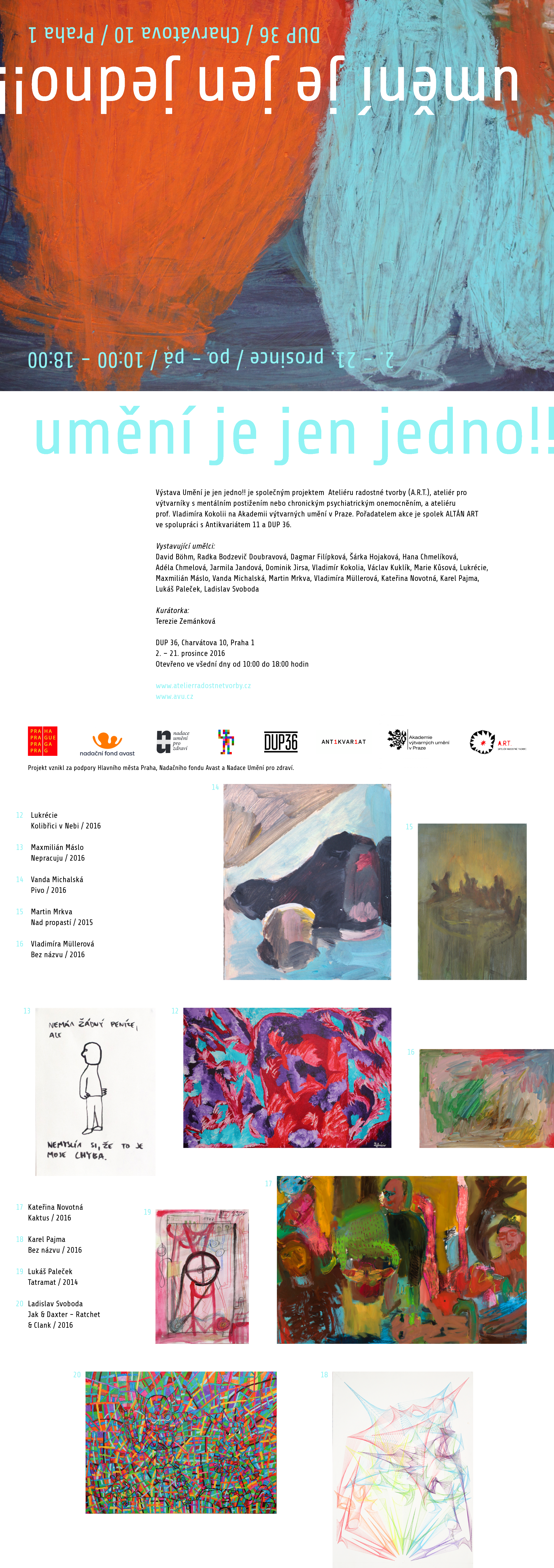 Flyer for the Umění je jen jedno!! [There Is Only One Art!!] exhibibition / 2016